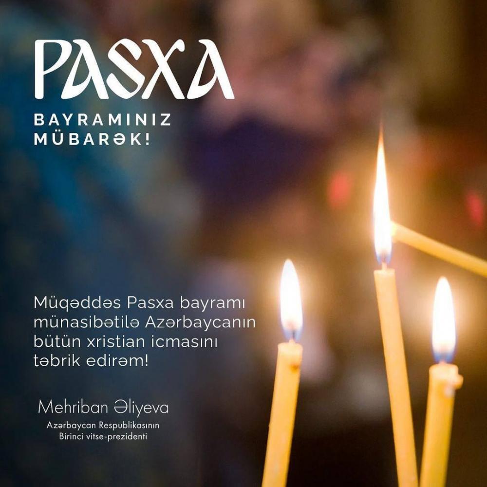 Первый вице-президент Азербайджанской Республики Мехрибан Алиева поделилась на своей официальной странице в Instagram публикацией по случаю праздника Пасхи.
