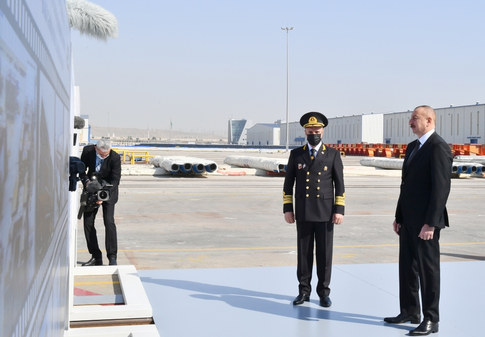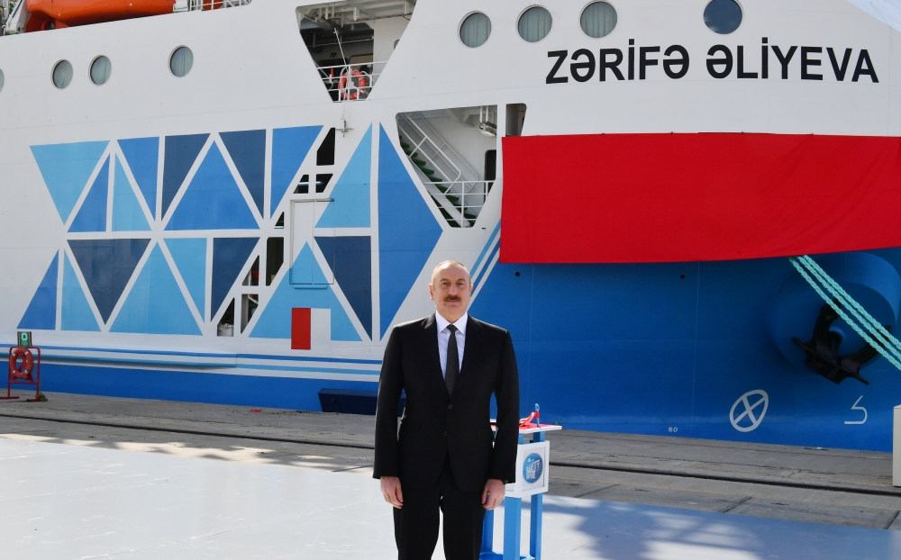 Ильхам Алиев принял участие в церемонии сдачи в эксплуатацию судна-парома «Зарифа Алиева»