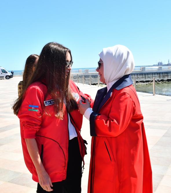 Первые леди Мехрибан Алиева и Эмине Эрдоган, а также Сюмеййе Байрактар и Арзу Алиева сфотографировались на память.