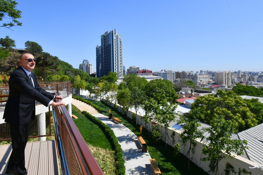Президент Ильхам Алиев полюбовался из нового парка панорамой столицы.