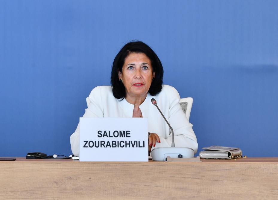 Затем выступила Президент Грузии Саломе Зурабишвили, которая поделилась мнением о проблемах мира, безопасности, фундаментальных прав человека, нехватки продовольствия и энергии. Подчеркнув, что установление мира на Южном Кавказе является одним из основных вопросов сегодняшнего дня, она сказала: