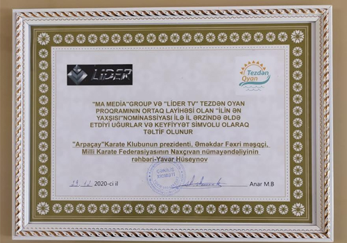 Arpaçay Karate Klubu “İlin ən yaxşısı” nominasiyasına layiq görülüb