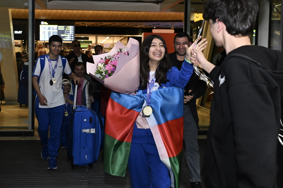 AZƏRTAC xəbər verir ki, onları Heydər Əliyev Beynəlxalq Aeroportunda media mənsubları, azarkeşlər və idmançıların yaxınları qarşılayıblar.