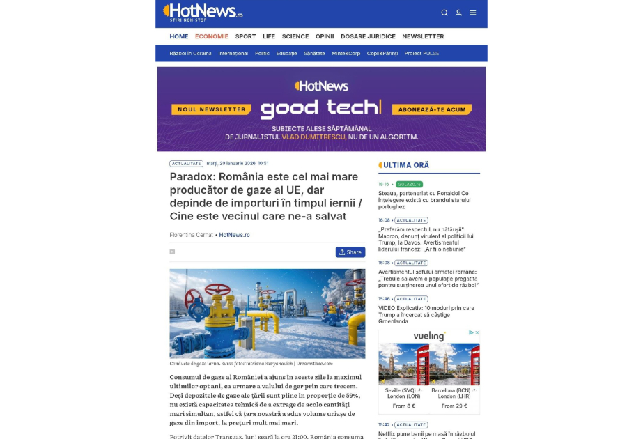 Rumıniya mətbuatı: Avropanın qaz tədarükündə Azərbaycanın rolu danılmazdır