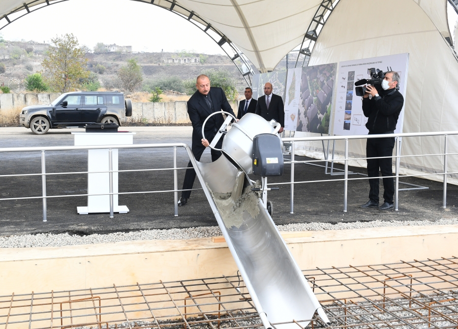İlham Əliyev Cəbrayilda yaşayış məhəlləsinin təməlini qoydu