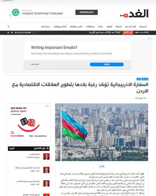 İordaniya mediasında Azərbaycan iqtisadiyyatı ilə bağlı məlumat dərc edilib