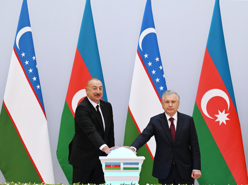 Sonra prezidentlər İlham Əliyev və Şavkat Mirziyoyev Azərbaycanda və Özbəkistanda birgə layihələrin başlanmasını bildirən rəmzi düyməni basdılar.