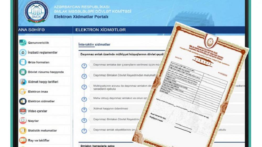 İqtisadiyyat Nazirliyi yanında Əmlak Məsələləri Dövlət Xidməti daşınmaz əmlakın qeydiyyatının rəsmiləşdirilməsini təmin edən elektron portalı 2024-cü ilin sonuna qədər vətəndaşların istifadəsinə verəcək. Dövlət qurumlarının müvafiq rəyi və icazəsi əsasında bütün sənədləri qaydasında olan evlərin və mənzillərin həmin portal üzərindən rəsmiləşdirilməsi, yəni mülkiyyət hüququna dair çıxarışın (kupça) alınması mümkün olacaq. Daşınmaz Əmlakın Elektron Reyestri və Kadastrı informasiya sistemində qeydə alınan ev və mənzillərin çıxarışlarına dair müvafiq məlumatlar vətəndaşın şəxsi kabinetində öz əksini tapacaq. Onlar “Elektron Hökumət” portalının daşınmaz əmlak bölməsinə daxil olmaqla çıxarışlarını əldə edəcəklər.