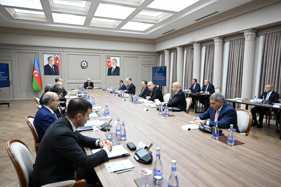 Nazirlər Kabinetinin mətbuat xidmətindən AZƏRTAC-a bildiriblər ki, Azərbaycanın Baş naziri Əli Əsədovun sədrliyi ilə keçirilən iclasın gündəliyində ölkəmizdə neft-qaz hasilatı sahəsində cari vəziyyət, əsas göstəricilər və perspektivlər, o cümlədən SOCAR-ın və ümumilikdə respublikanın neft-qaz sektorunun uzunmüddətli inkişaf planları, 2035-ci ilədək hasilat proqnozları, Hasilatın Pay Bölgüsü və Risk Xidməti sazişləri çərçivəsində işlənən və yeni yataqlar üzrə ehtiyat həcmləri, “Azneft” İstehsalat Birliyinin fəaliyyəti, Heydər Əliyev adına Neft Emalı Zavodunun Yenidənqurma və modernizasiya layihəsinin icra vəziyyəti, neft-kimya məhsullarının istehsalı və ölkədaxili yanacaq tələbatı, SOCAR tərəfindən ölkə xaricində həyata keçirilən layihələr, SOCAR-ın maliyyə göstəriciləri və digər cari məsələlər ətraflı müzakirə olunub.
