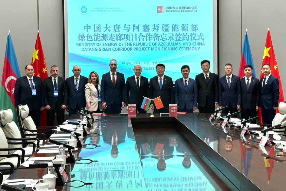 Çinin “Datang” şirkəti ilə “yaşıl enerji” dəhlizinin inkişafı üzrə əməkdaşlığa dair Anlaşma Memorandumu imzalanıb