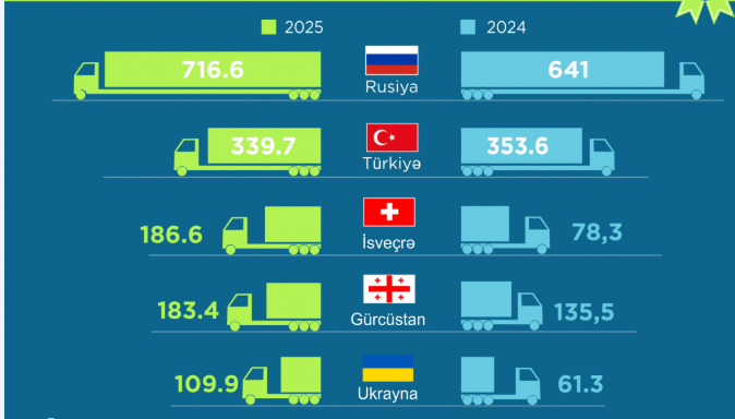 Azərbaycanın qeyri-neft ixracında yeni nəsil xidmət ixracı hesab edilən peyk telekommunikasiya xidmətləri də öz imkanlarını genişləndirib. 2025-ci ilin yanvar-iyul aylarında Azərbaycan Respublikasının Kosmik Agentliyi (“Azərkosmos”) tərəfindən dünyanın 41 ölkəsinə 10,1 milyon dollar dəyərində peyk telekommunikasiya xidmətləri ixrac edilib. “Azərkosmos”un xidmət ixracından əldə etdiyi gəlir onun ümumi gəlirlərinin 66 faizini təşkil edib. Hesabat dövründə peyk telekommunikasiya xidmətlərinin ixracının ilk beşliyində 2,7 milyon dollarla Böyük Britaniya ilk yerə sahibdir. Sonrakı yerlərdə 2,1 milyon dollarla Lüksemburq, 498,9 min dollarla Nigeriya, 461 min dollarla Türkiyə və 417,5 min dollarla Misir qərarlaşıb.
