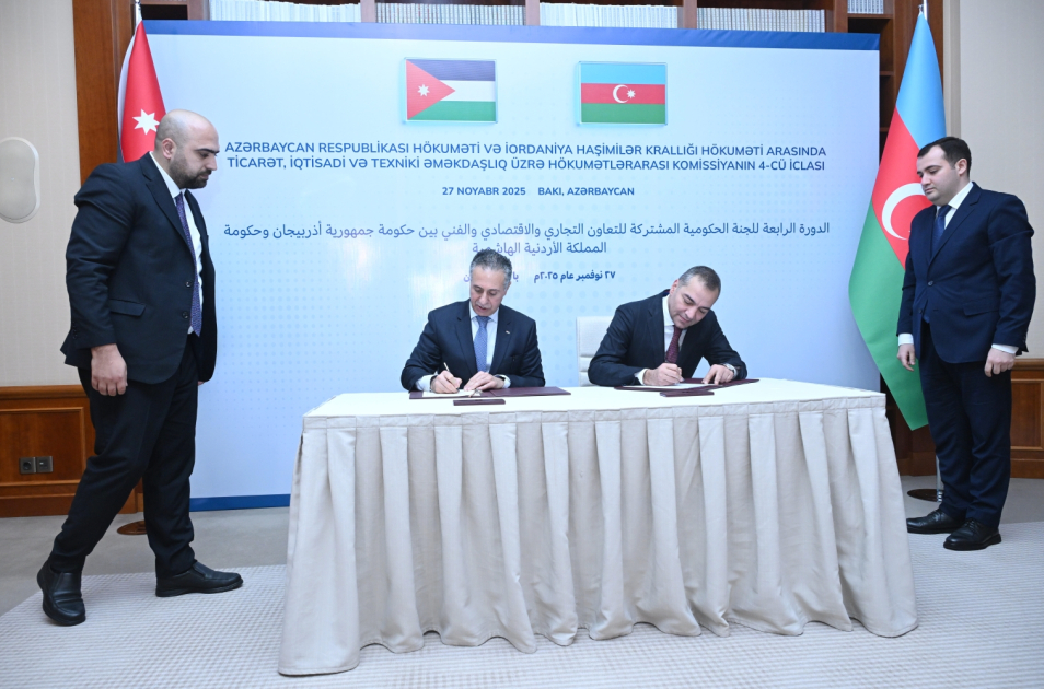 Bakıda Azərbaycan Respublikası Hökuməti və İordaniya Haşimilər Krallığı Hökuməti arasında Ticarət, İqtisadi və Texniki Əməkdaşlıq üzrə Hökumətlərarası Komissiyanın IV iclası başa çatdıqdan sonra bir sıra sənədlər imzalanıb.