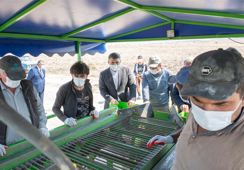 Nazir Tovuz rayonunun Yuxarı Öysüzlü kəndində sahələrdə kartof yığımı prosesini müşahidə edib, fermer Kamal Ələsgərovun sahəsində kartofçuluqla məşğul olan fermerlərlə məhsuldarlığın daha da artırılması, təsərrüfatlarda müasir suvarma sistemlərindən istifadənin genişləndirilməsi, məhsul satışı ilə bağlı fikir mübadiləsi aparıb.
