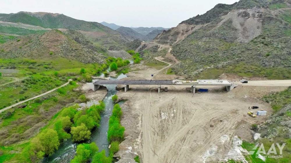 Дорога проходит по территориям со сложным рельефом. Хотя этот фактор и создает определенные трудности, темпы строительных работ не снижаются. Здесь также ведется строительство кольцевых труб и различных искусственных сооружений для отвода вод. На 22-м километре дороги завершается строительство 4-пролетного моста протяженностью 139.5 метра. В целом строительство дороги планируется завершить в этом году.