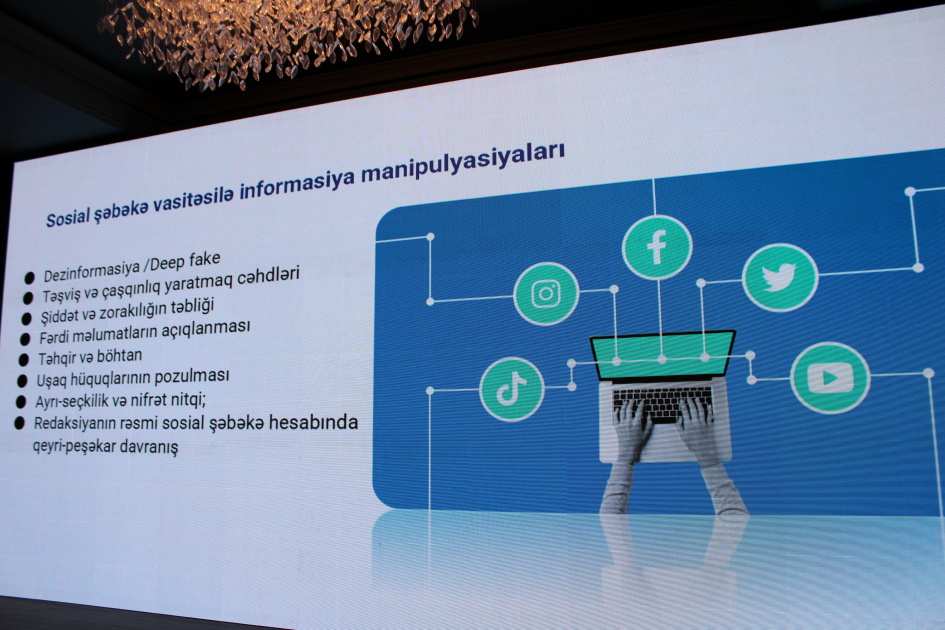 Qeyd edilib ki, bu gün ölkəmizdə 10,1 milyon əhalinin 6,1 milyonu sosial media istifadəçisidir. Ümumiyyətlə, sosial mediada informasiya manipulyasiyası, dezinformasiya, fərdi məlumatların açıqlanması, uşaq hüquqlarının pozulması kimi hallar yolverilməzdir.