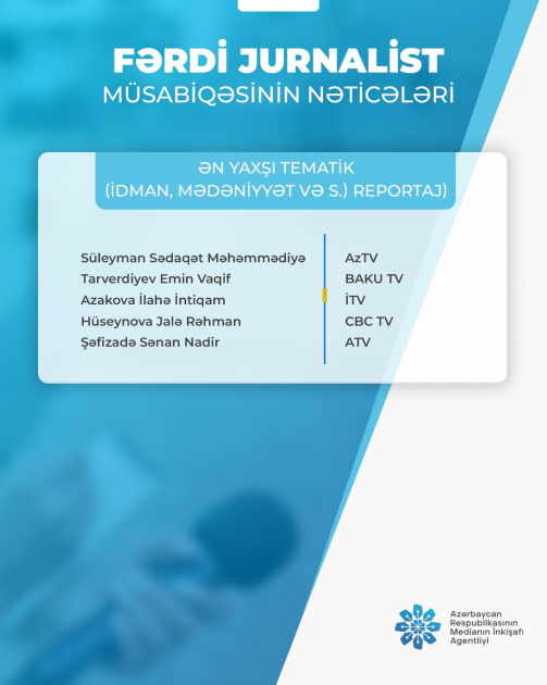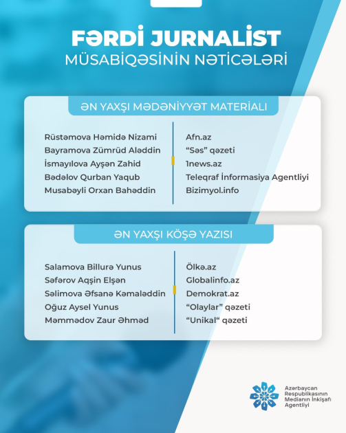 Medianın İnkişafı Agentliyi "Fərdi jurnalist müsabiqəsi"nin nəticələrini açıqlayıb.