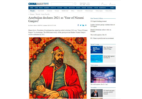 Nüfuzlu “China Daily” qəzeti “Nizami Gəncəvi İli” haqqında məqalə yayıb