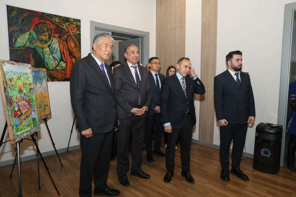 AZƏRTAC xəbər verir ki, qonaqlar əvvəlcə gənc rəssamların sərgilənən rəsm əsərləri ilə tanış olublar.