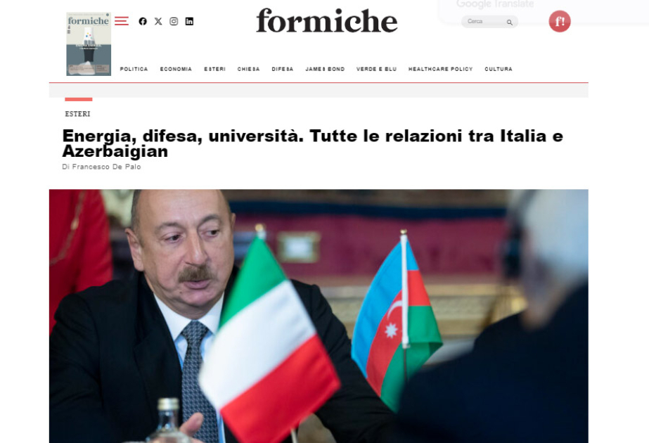 İtaliya qəzeti Azərbaycan-İtaliya strateji əlaqələrindən yazıb