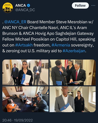 A.Bransonun sosial media üzərindən axtarışlarına, əlaqələrinə nəzər saldıqda onun silahlı terrorizmlə əlaqələri aydın görünür. Radikal Erməni İnqilabi Federasiyasının (ARF) üzvü kimi Aram Branson Çikaqo qurumun filiallarının işində fəal iştirak edib. O, həmçinin Erməni Gənclər Federasiyasının “Böyük Boston “Njde” bölməsinin üzvü olub. Njdenin kim olduğu hər kəsə yaxşı məlumdur. Bununla yanaşı, o, Amerika Erməniləri Milli Komitəsinin (ANCA) bir çox fəaliyyətlərində aktiv iştirak edib, onların lobbiçilik fəaliyyəti çərçivəsində ABŞ Konqresini ziyarət edib. ANCA-nın sosial şəbəkə hesablarında bununla bağlı məlumatlar yerləşdirilib. İndiki halda ABŞ-da konqresmenlərin və rəsmilərin bu təşkilatlarla əməkdaşlıq etmələri, ümumilikdə dəfələrlə terror hərəkətlərində adları hallanan bu qurumların cinayət məsuliyyətinə cəlb olunmaması təəssüf və təəccüb doğurur.