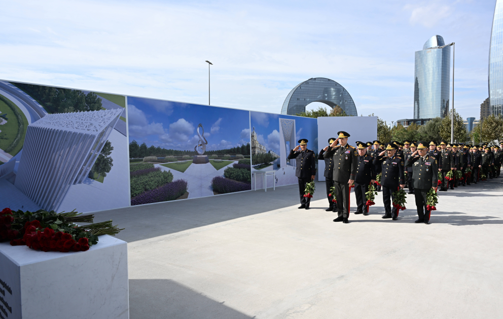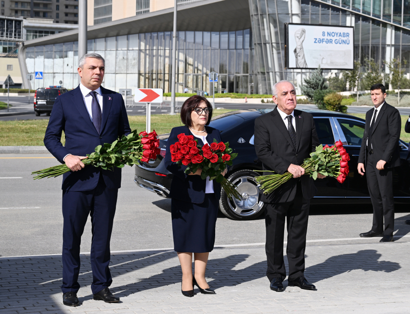 AZƏRTAC xəbər verir ki, dövlət və hökumət rəsmiləri xatirə daşının önünə gül dəstələri düzərək şəhidlərin əziz xatirəsini ehtiramla anıblar.