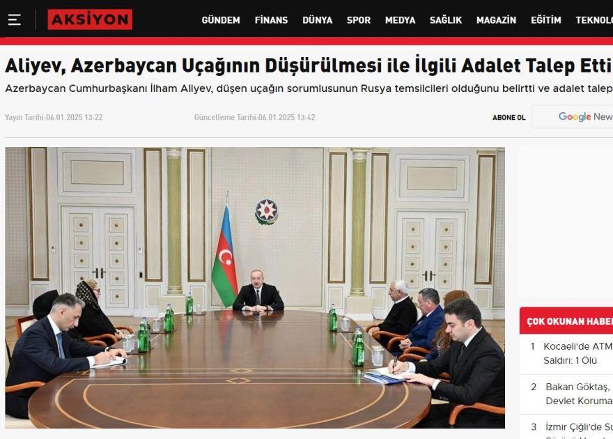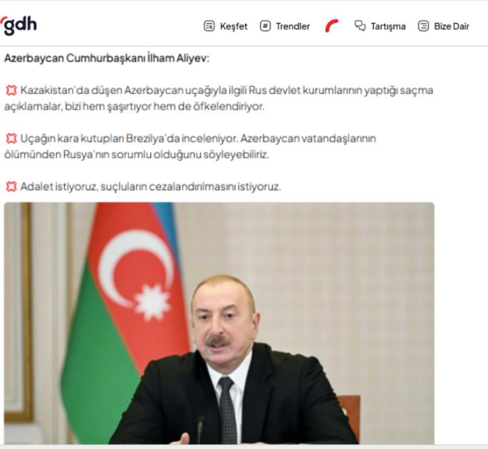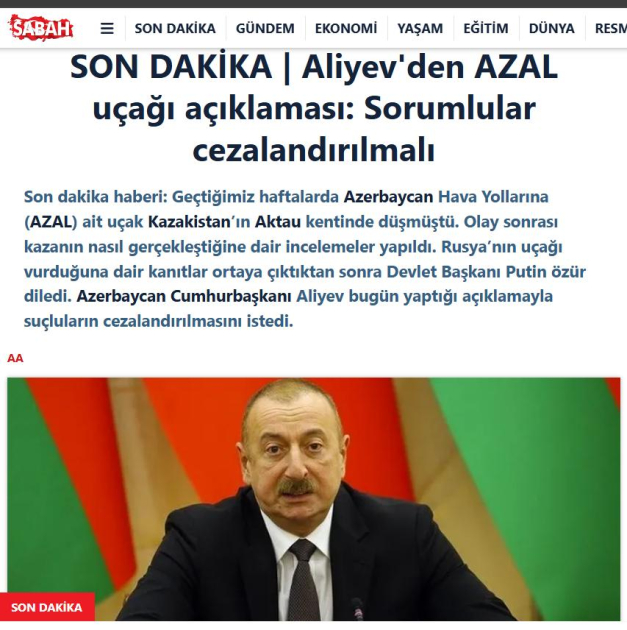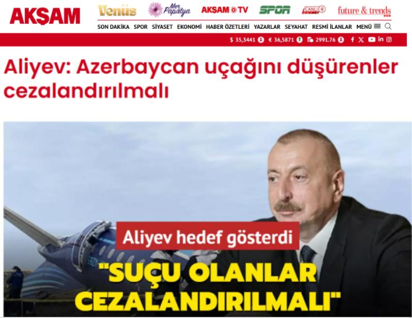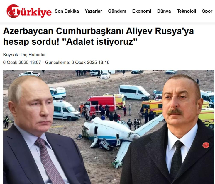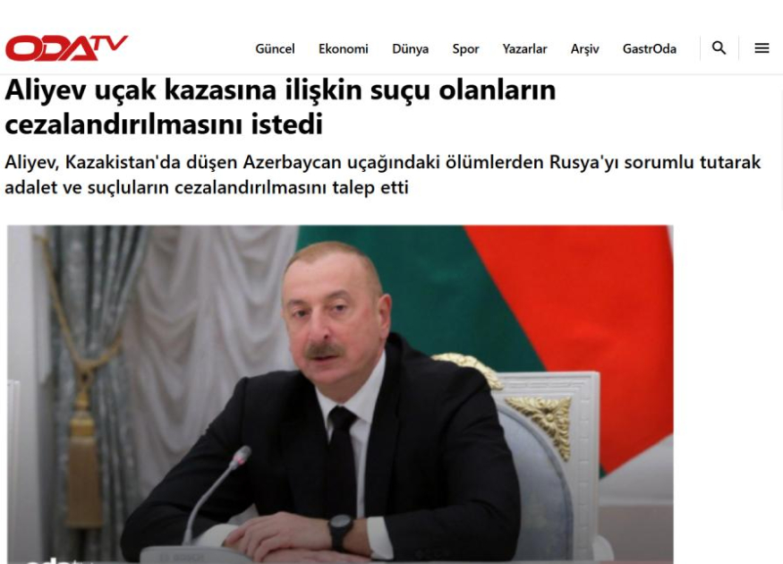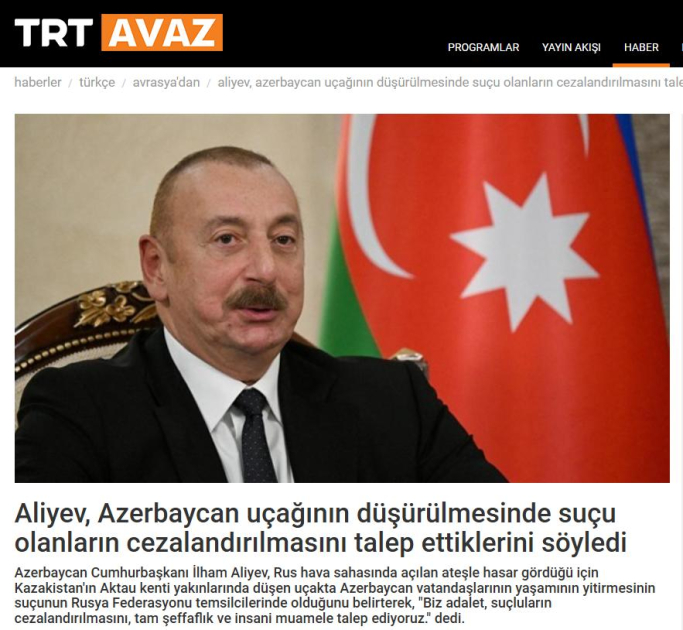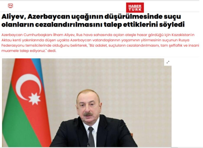 / / Türkiyə mediası: Azərbaycan Prezidenti təyyarə qəzası ilə bağlı günahkarların cəzalandırılmasını tələb edib