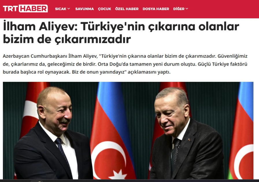 Türkiyə mediası Prezident İlham Əliyevin müsahibəsinə geniş yer ayırıb
