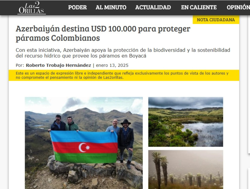 Kolumbiyanın aparıcı xəbər saytı “Las2Orillas”da “Azərbaycan Kolumbiya paramoslarının mühafizəsi məqsədilə 100 min ABŞ dolları ayırıb” sərlövhəli məqalə dərc edilib.