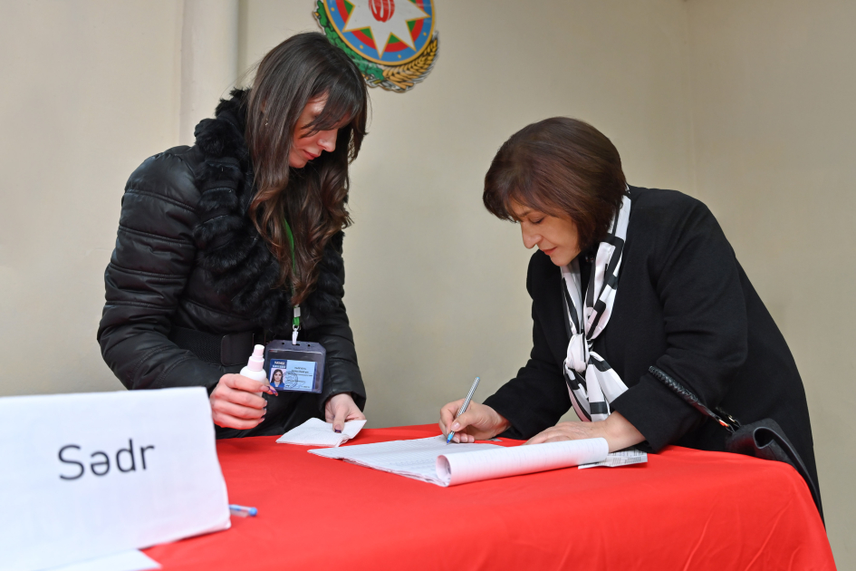 Azərbaycan Respublikası Milli Məclisinin sədri Sahibə Qafarova yanvarın 29-da 19 saylı Nərimanov birinci seçki dairəsinin 11 saylı seçki məntəqəsində səs verib.
