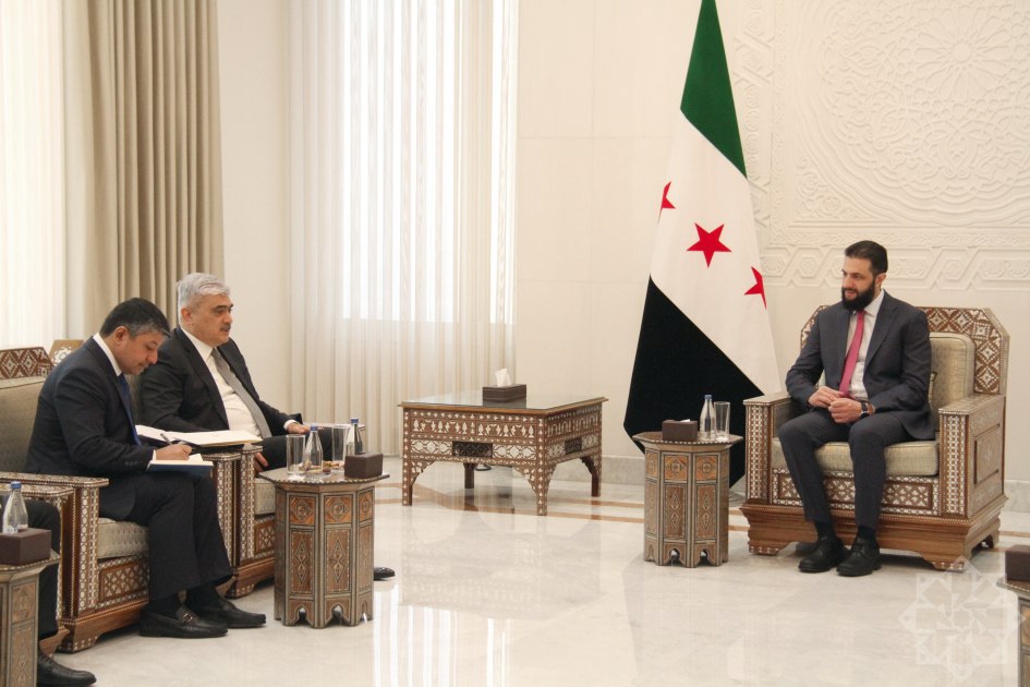 Səfər çərçivəsində Suriya Ərəb Respublikasının keçid dövrü Prezidenti Əhməd Əl Şaraa Azərbaycan nümayəndə heyətini qəbul edib.