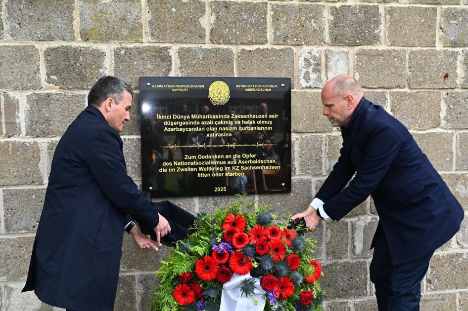 / / Almaniyanın Zaksenhauzen əsir düşərgəsində azərbaycanlı əsirlərə həsr edilmiş xatirə lövhəsi açılıb