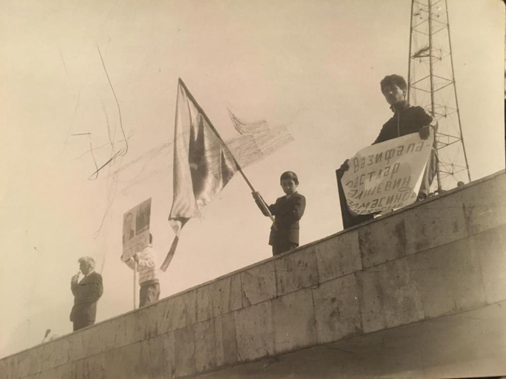 Bu mitinqdə iki azyaşlı uşaq da iştirak edirdi. Onlar əllərində bayraq və Heydər Əliyevin portretini tutmuşdular. Bu azyaşlı uşaqlar kimlər idi və onları bura kim gətirmişdi? Həmin uşaqlar Ramin və Tural Rüstəmov qardaşları idilər. Onlar mitinqə ataları Arif Rüstəmovla birlikdə gəlmişdilər. Arif Rüstəmov bütün varlığı ilə Heydər Əliyevçi idi. O, ötən əsrin doxsanıncı illərinin əvvəllərində Heydər Əliyevin müdafiəsi ilə bağlı mitinqlərin təşkilində və keçirilməsində böyük fəallıq göstərirdi. Arif Rüstəmovun həyat yoldaşı Həvva Həsənova həmin günlərdə baş verənlərə işıq salaraq deyir: “Yaş senzi” mitinqinin təşkil edilməsində ən fəal rol oynayan şəxslərdən biri mərhum həyat yoldaşım, Heydər Əliyevi səmimiyyətlə sevən, onun müdafiəsinə qalxan Arif Rüstəmov idi. Arif Rüstəmov yeganə şəxs idi ki, iki azyaşlı oğlunu da özü ilə o mitinqlərə aparırdı. Həmin vaxt edilən təhdidlərə, Əmircan qəsəbəsindəki evimizin qəsdən yandırılmasına baxmayaraq, Arif Rüstəmov Heydər Əliyevin digər tərəfdarları ilə birlikdə bu aksiyaları təşkil edir və azyaşlı oğlanları ilə birlikdə mitinqlərə qatılırdı. Aksiyalardan birində oğlumuz Tural və Ramili hətta döyərək, xəsarət yetirmişdilər”.