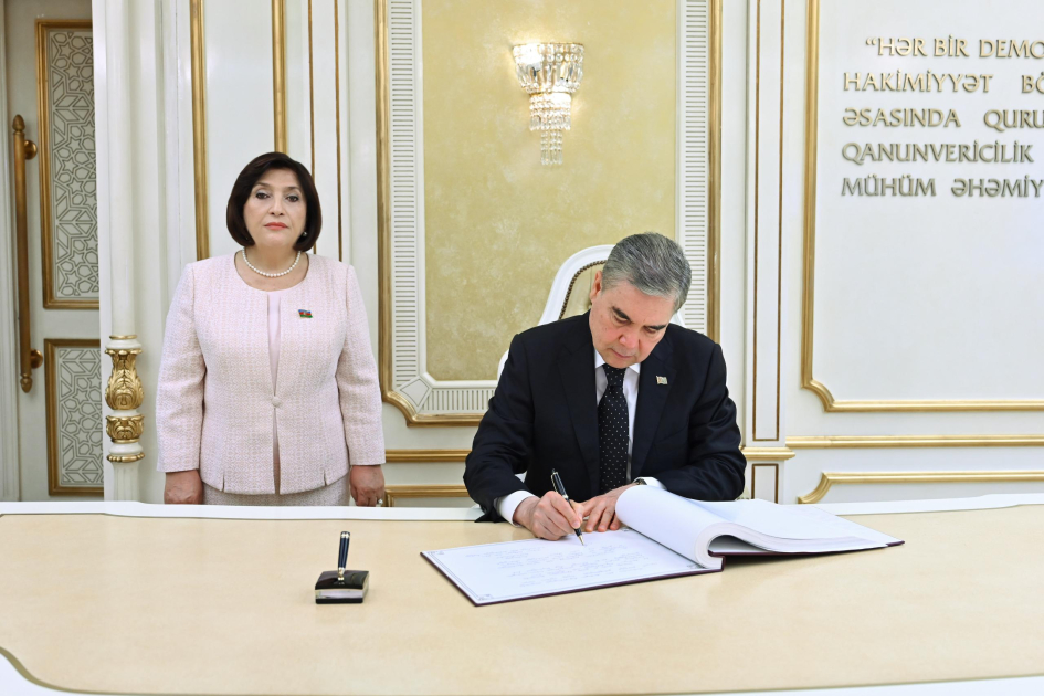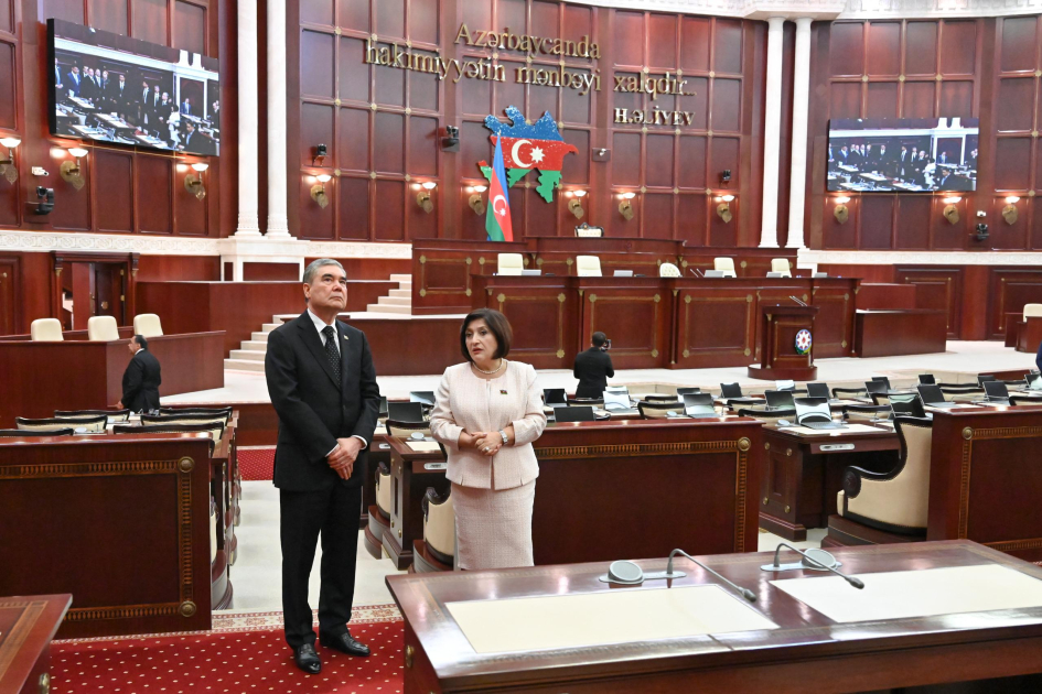 Milli Məclisin Mətbuat və ictimaiyyətlə əlaqələr şöbəsindən bildiriblər ki, Xalq Məsləhətinin sədri əvvəlcə Milli Məclisin plenar iclas zalı ilə tanış olub. Ulu Öndər Heydər Əliyevin adını daşıyan xatirə zalına gələn qonaqlar burada Azərbaycan xalqının Ümummilli Lideri Heydər Əliyevin həyatının və siyasi fəaliyyətinin müxtəlif dövrlərini əks etdirən eksponatlara baxıblar. Türkmənistan Xalq Məsləhətinin sədri Qurbanqulu Berdiməhəmmədov buradakı Xatirə kitabına ürək sözlərini yazıb.