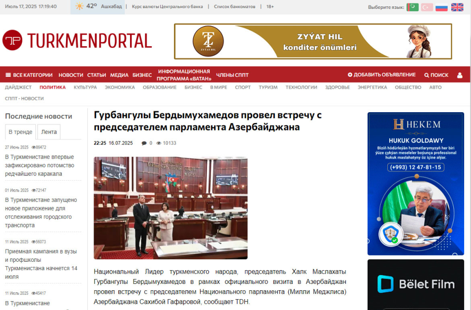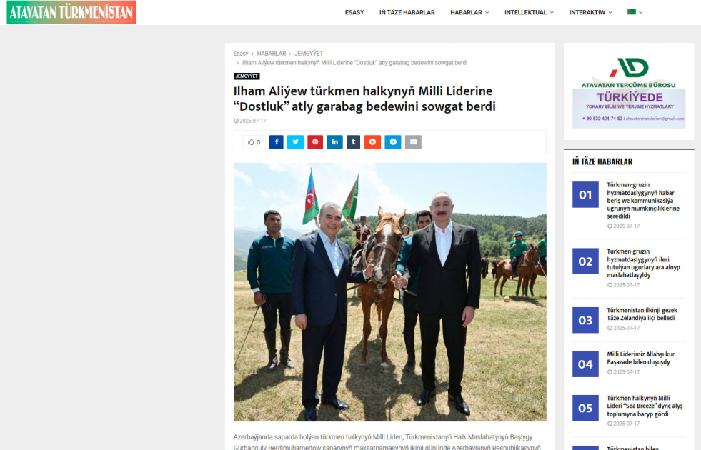 Materiallarda rəsmi xəbərlərlə yanaşı, şərhlər də öz əksini tapıb. Diqqətə çatdırılıb ki, Türkmənistan və Azərbaycan xalqları ortaq tarixə, dinə, mədəniyyətə, milli-mənəvi dəyərlərə malikdirlər və bu amillər iki xalqın birliyini, dövlətlərin isə uzunmüddətli əməkdaşlığını şərtləndirir. Vurğulanıb ki, hər iki dövlətin rəhbərləri arasında hökm sürən mehriban münasibətlər əlaqələrin inkişafına töhfə verir. Azərbaycan Prezidenti İlham Əliyev və Türkmənistan Xalq Məsləhətinin sədri Qurbanqulu Berdiməhəmmədov görkəmli siyasi və dövlət xadimləridir, hər iki lider xalqlarının rifahı naminə geniş əməkdaşlıq əlaqələri quraraq ölkələrini inkişaf etdirir.