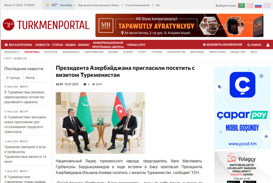 Türkmənistan mətbuatı Qurbanqulu Berdiməhəmmədovun Azərbaycana səfərini geniş işıqlandırıb
