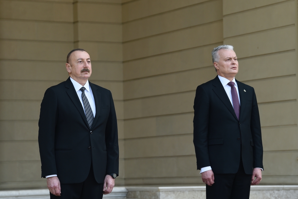 Президент Ильхам Алиев и Президент Гитанас Науседа обошли строй почетного караула.