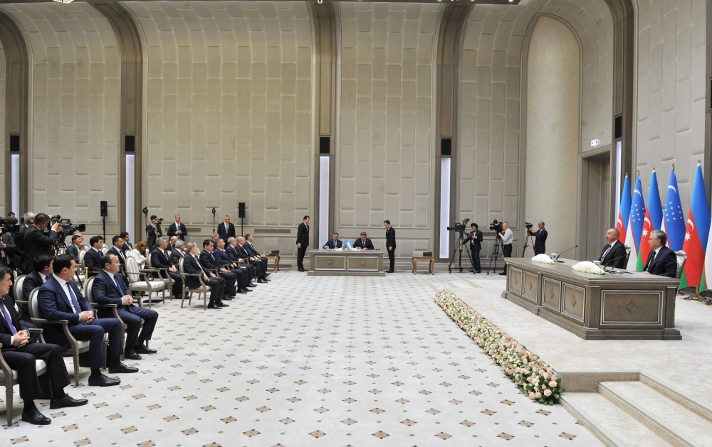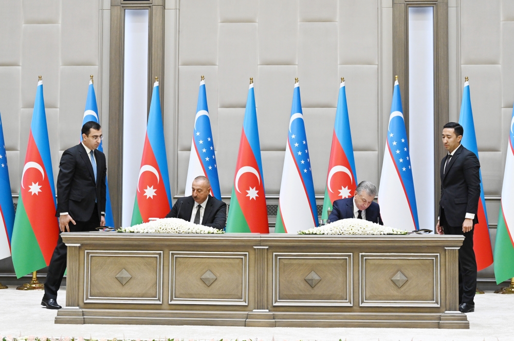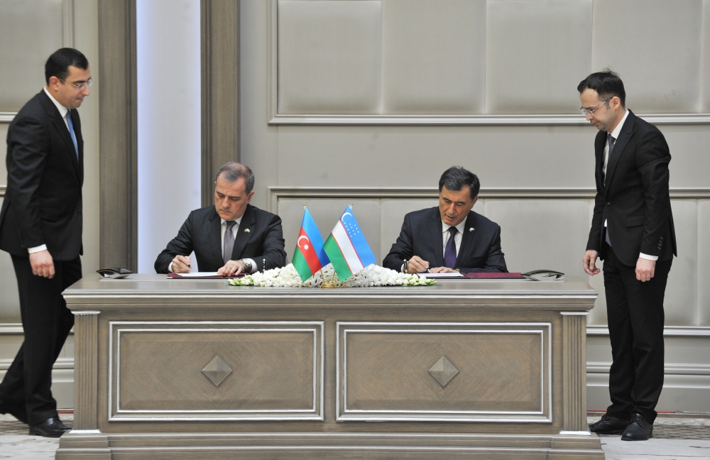 21 июня по завершении встречи в расширенном составе с участием Президента Азербайджанской Республики Ильхама Алиева и Президента Узбекистана Шавката Мирзиеева состоялось подписание азербайджано-узбекских документов.