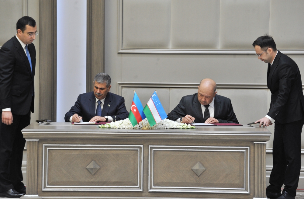 «Соглашение между Правительством Азербайджанской Республики и Правительством Республики Узбекистан о сотрудничестве в военной области» и «Соглашение между Правительством Азербайджанской Республики и Правительством Республики Узбекистан о военно-техническом сотрудничестве» подписали министр обороны Азербайджанской Республики Закир Гасанов и министр обороны Республики Узбекистан Баходир Курбанов.