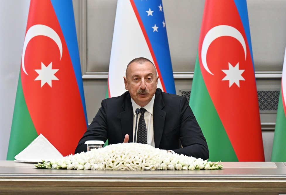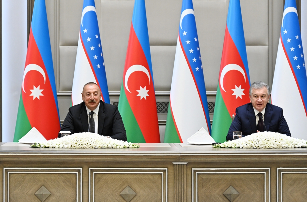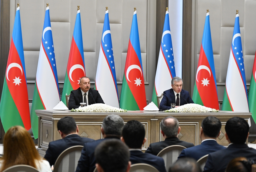 Президенты Азербайджана и Узбекистана выступили с заявлениями для печати