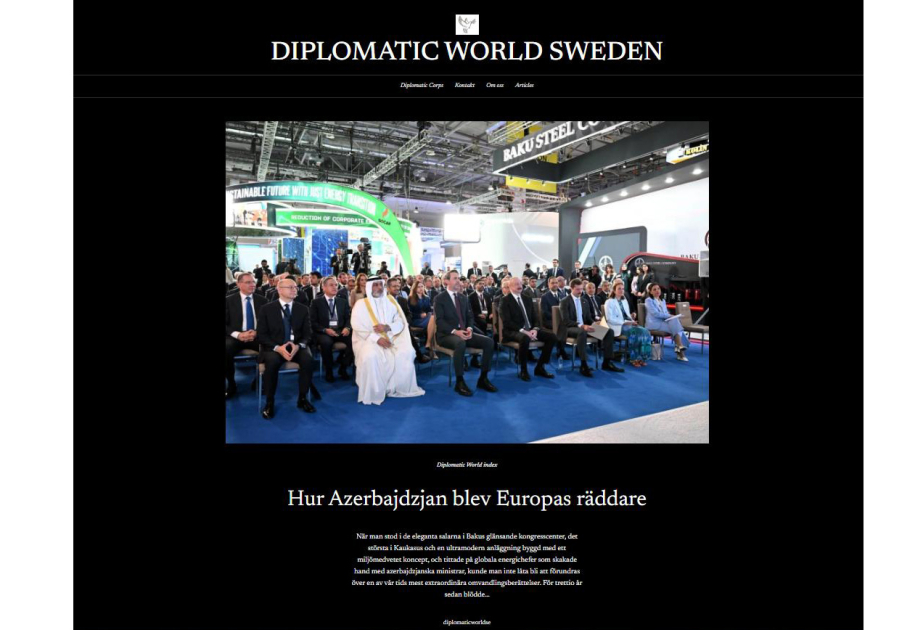 “Diplomatic World Sweden” saytı “Baku Energy Forum”u barədə məqalə dərc edib