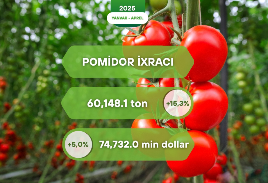 Azərbaycandan xarici bazarlara pomidor ixracı 15,3 faiz artıb