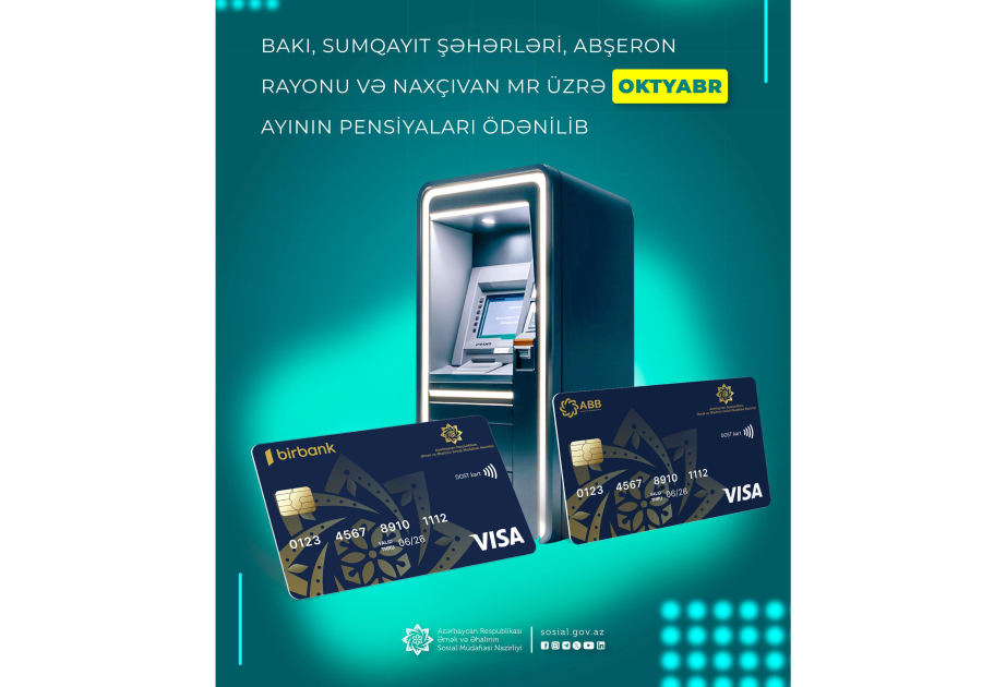 Bakı, Sumqayıt, Abşeron və Naxçıvan üzrə oktyabr ayının pensiyaları ödənilib