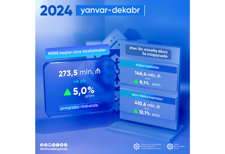 DSMF: Ötən il məcburi dövlət sosial sığorta üzrə daxilolmalar 5 faiz artıb