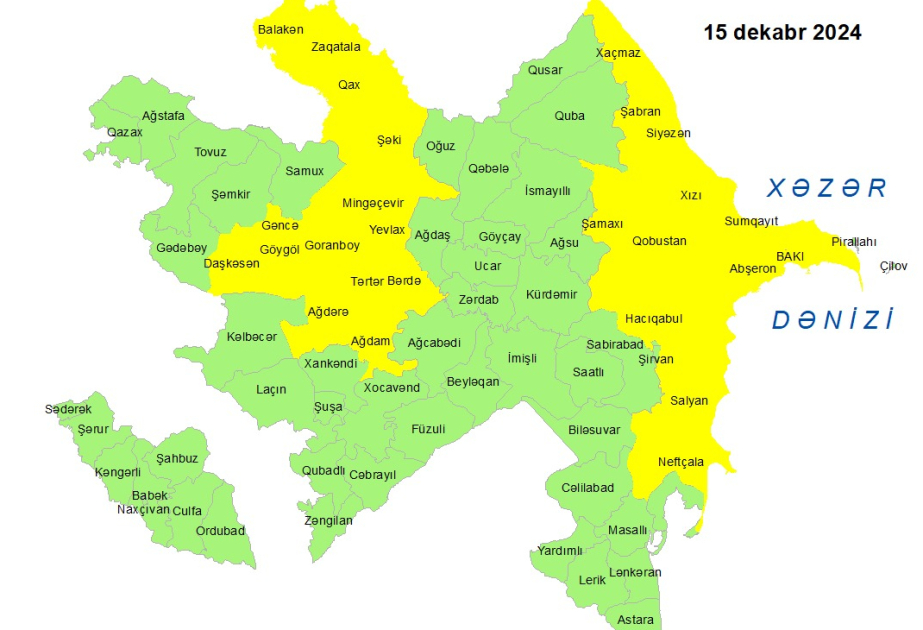 Küləkli hava şəraiti ilə bağlı sarı xəbərdarlıq verilib