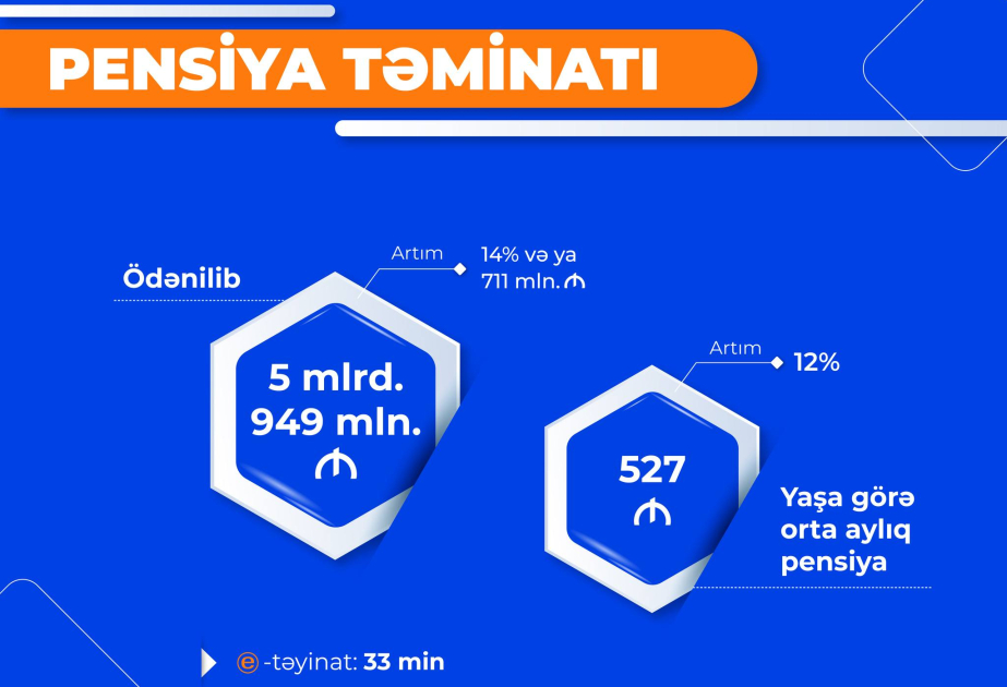 Pensiya ödənişlərinə 5 milyard 949 milyon manat vəsait yönəldilib