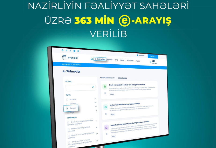 Yanvar-iyul aylarında sosial sahə üzrə 363 min elektron arayış verilib