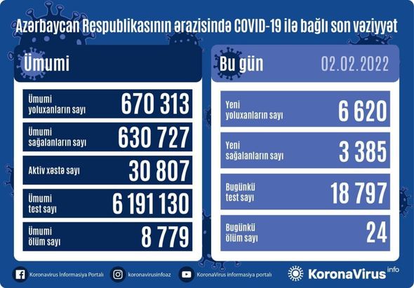 В Азербайджане за сутки выявлено 3 192 случая заражения коронавирусом