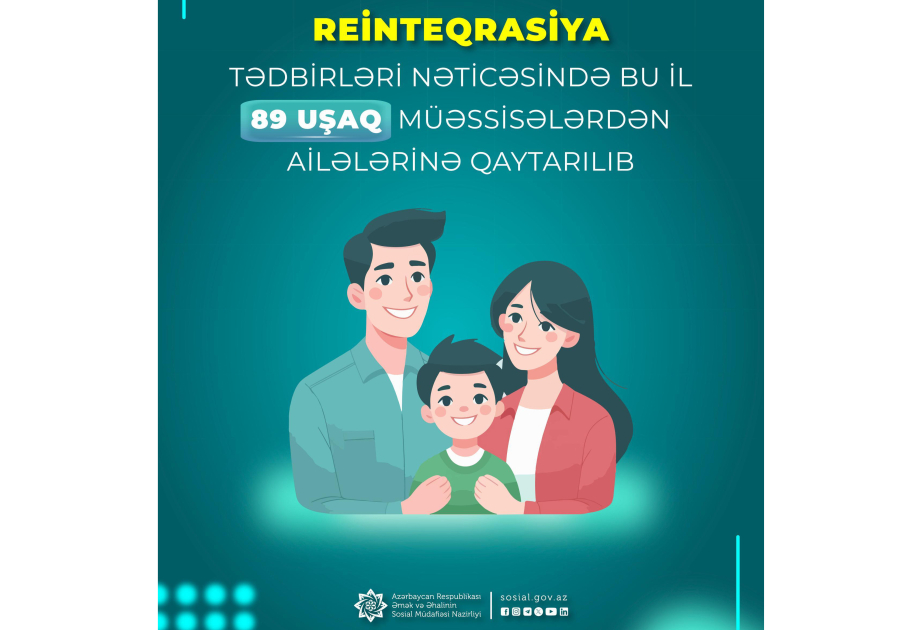 Bu il daha 89 uşaq müəssisələrdən ailələrinə qaytarılıb