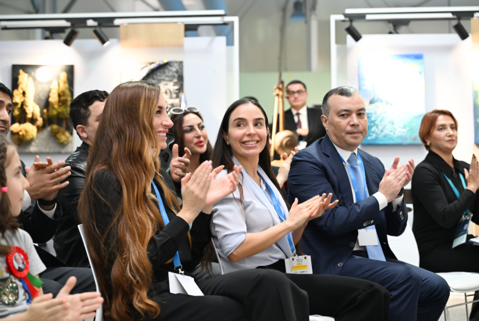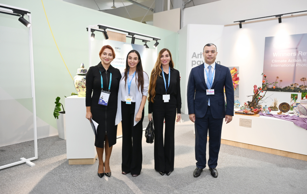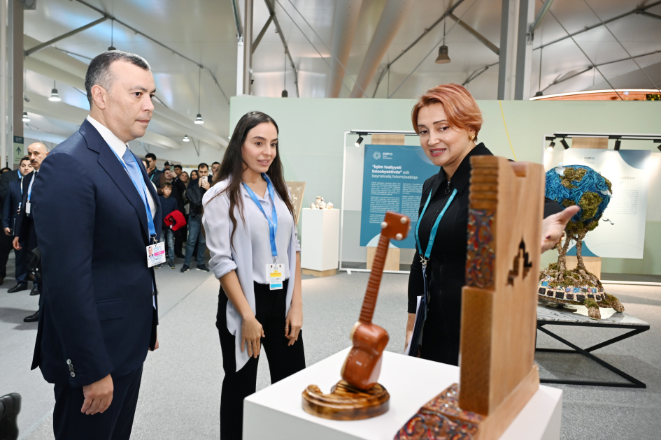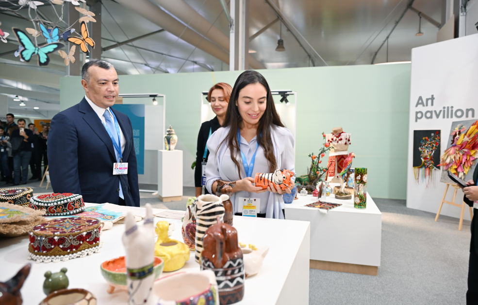 Heydər Əliyev Fondunun vitse-prezidenti Leyla Əliyeva və Bakı Media Mərkəzinin rəhbəri Arzu Əliyeva DOST İnklüziv İnkişaf və Yaradıcılıq Mərkəzi tərəfindən COP29-un Yaşıl Zonasındakı “Art Pavillion”da təqdim edilən sərgi ilə tanış olublar.