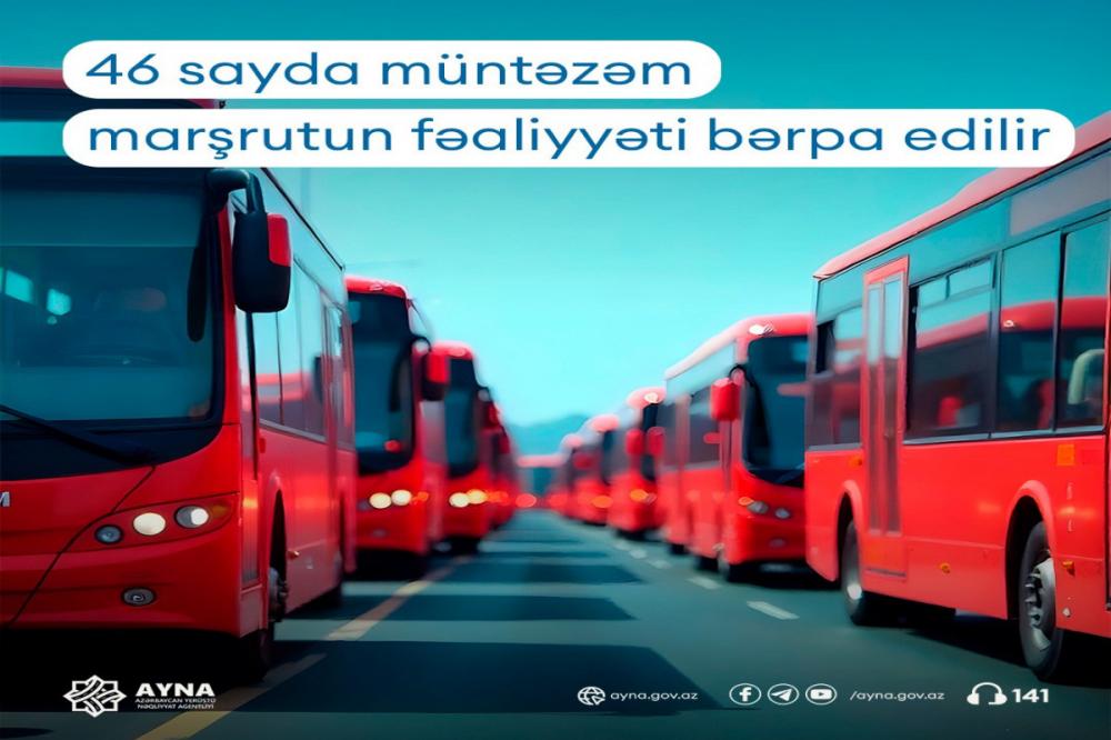 Noyabrın 25-dən Bakıda daha 46 sayda avtobus marşrutunun fəaliyyəti bərpa edilir.
